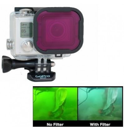 Filtro PolarPro serie Aqua3+ Glass Edition P1002 versione colore magenta. La PolarPro Filters produce i filtri di migliore qualità per le vostre GoPro Hero e vi permetteranno di ottenere filmati perfetti in ogni condizione. La differenza qualitativa di un filmato effettuato con il filtro corretto è infaffi notevole in quanto vengono corretti i toni che tendono ad appiattire tutti i colori. Il filtro si applica esternamente sul case stagno fornito di serie con le Hero3+ e grazie al sistema a sgancio rapido potrete rimuoverlo ed aplicarlo con facilità.