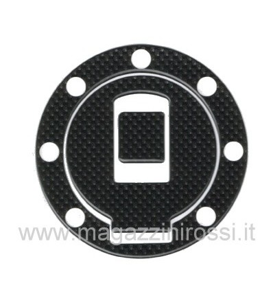 Protezione adesiva in rilievo per tappo serbatoio, carbon look, adattabile su moto Yamaha. Questo tipo di protezione, ormai molto utilizzato, riprende i colori della bulloneria in ergall permettendo di personalizzare ulteriormente la propria moto.