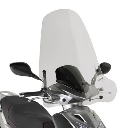 Parabrezza alto Givi 441A specifico per Kymco Agility 50-125-150-200 R16 versioni 2008-2013. Questo parabrezza, ideale per ripararsi dal vento e dal freddo, è fornito di ogni vite o attacco necessario per il suo montaggio e non sono necessarie modifiche allo scooter.