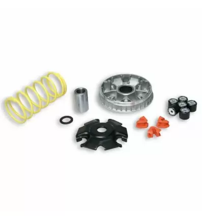 La confezione contiene: variatore con calotta, cursori, mozzo, rulli da 11,5 gr., molla gialla.