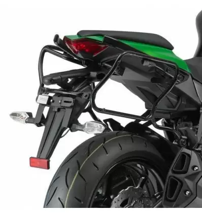 Portavaligie laterale a rimozione rapida Givi PLXR4100 per valigie V35 specifico su Kawasaki Z1000 SX fino al 2019. Questa coppia di telai laterali è realizzata in metallo tubolare nero e permettera l'applicazione di due valigie laterali Givi V35. Questa versione di telai prevede, una volta applicati, un sistema di sgancio rapido qualora non aveste interesse a lasciarli sulla moto in mancanza delle borse. Si applicano su punti predisposti senza dover apportare modifiche alla moto e sono dotati di istruzioni di montaggio.