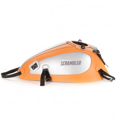 Dettagli Copriserbatoio Bagster per Ducati Scrambler 800 in similpelle arancione, argento e nero