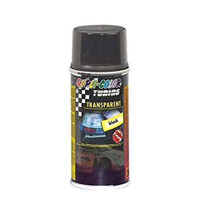 Vernice spray acrilica Dupli Color in bomboletta da 150 ml, colore trasparente nero. La Dupli Color produce vernici spray di altissima qualità che assicurano sempre un ottimo risultato. Questa vernice speciale è particolarmente adatta per colorare parti trasparenti, ad esempio i vetri dei fari, in modo da permettere alla luce di filtrare.