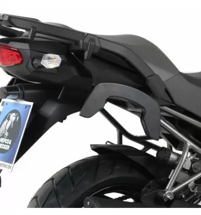 Coppia di telai laterali neri Hepco & Becker per borse semirigide C-Bow specifici per Kawasaki Versys 1000 2012-2014. Grazie a questi telaietti potrete applicare velocemente le borse laterali Hepco & Becker dotate dello stesso sistema di aggancio rapido C-Bow, anche una alla volta. Questi telai si applicano sui punti di ancoraggio pre esistenti sulla moto alla quale non andranno apportate modifiche. Sono dotati di istruzioni di montaggio ed ogni altro accessorio necessario per il montaggio.