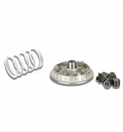 Kit completo Malossi Multivar 2000 (art. 5111808) per Aprilia Atlantic 500, Piaggio X9 500 ecc. Il Multivar 2000 è stato studiato per ottimizzare il rendimento del motore sia in accelerazione che in ripresa, a seconda della taratura, e in velocità massima. E' realizzato nei migliori materiali con la maggior cura possibile che la Malossi può dare. Ogni kit è dotato di corpo variatore, boccola, calotta guida rulli con cursori e rulli HTRoll. In alcuni casi, dove la Malossi ha ritenuto necessario per una corretta messa a punto, sono presenti serie rulli accessorie e/o molla di contrasto. Questo kit si intercambia comunque con le parti originali. Il suo montaggio relativamente semplice, il guadagno in accelerazione e velocità massima e la totale affidabilità rendono questa modifica il primo ideale passo per una qualsiasi elaborazione.