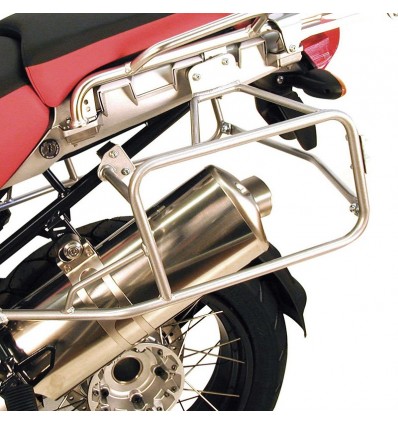 Telai laterali neri Hepco & Becker SIDE CARRIER specifici per BMW R1200GS Adventure 2008-2013. Grazie a questi telai laterali potrete sostenere qualsiasi modello di borse latelali morbide o rigide - Hepco & Becker - senza che le stesse vadano a toccare parti in movimento. Ogni telaio si adatta perfettamente alla moto sfruttando attacchi pre esistenti. Vanno applicati necessariamente in coppia e sono dotati di istruzioni di montaggio e di tutti gli accessori per effettuare una corretta installazione.