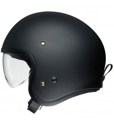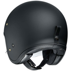 Casco Shoei modello J-O versione monocolore nero opaco. La Shoei propone questo modello pensato principalmente per gli utenti di moto cafè racer, vintage, naked, special e tutte le modern classic. Si tratta di un casco realizzato naturalmente nella speciale fibra composita Shoei AIM+ che raggruppa materiali in strati misti tra vetro, Kevlar e fibre organiche al fine di offrire la marrima capacità di assorbimento dell'urto. La calotta esterna viene realizzata in 3 diverse misure per garantire le migliori proporzioni in tutte le taglie, soprattutto per quelle più piccole. Lo Shoei J-O è dotato di una comoda visiera CJ-3 trasparente a scomparsa che è stata disegnata per deviare al meglio il vento dagli occhi. La calotta interna è realizzata in uno speciale espanso EPS a doppia densita mentre gli interni veri e propri, in tessuto speciale 3D Max Dry, sono amovibili per il lavaggio. Nella parte posteriore della calotta troverete il gancio porta occhiali mentre il sistema di chiusura è di tipo a doppia D.