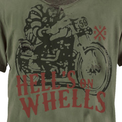 Dettagli T-Shirt collo a V Rude Riders da uomo con stampa Hell's on Whells