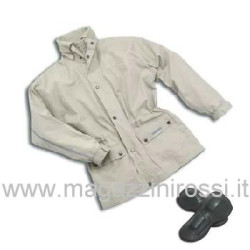 Giacca Tucano Urbano modello Carlos (art. 867S), colore sabbia. Questa è una giacca da moto, in stile classico, fresca e traspirante realizzata interamente in cotone dal taglio lungo per coprire l'abito. Sono presenti numerose tasche interne ed esterne, chiusura con lampo antivento, doppio collo staccabile per il lavaggio, banda rifrangente sulla schiena e predisposizione per per protezioni sui gomiti.