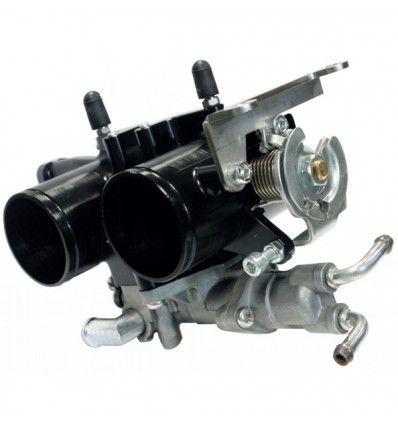 I condotti di questo corpo farfallato sono da 38mm ed hanno un diametro interno che inizia tondo per diventare prgressivamente ovale in prossimità di ogni valvola a farfalla. Nel kit sono presenti anche i due collettori di aspirazione, anch'essi maggiorati per garantire le massime prestazioni.
