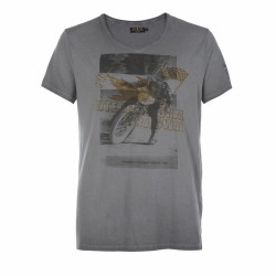 T-Shirt da uomo Rude Riders grafica International Speedway, colore Dark Shadow. Questa maglietta è realizzata in fibra naturale di cotone, molto morbida e leggera al tatto, in modo da essere estremamente confortevole. Rude Riders si sta ormai affermando come un punto di riferimento nell'abbigliamento che ruota intorno alle moto custom, cafe racer e vintage. Ogni capo ed accessorio Rude Riders è caratterizzato da uno stile molto ricercato e viene singolarmente realizzato con procedimenti artigianali che, grazie alle piccole imperfezioni e differenze che ne conseguono, rendono ogni capo unico ed esclusivo. L'aspetto vissuto di ogni capo viene quindi enfatizzato alla perfezione per essere in linea con le ultime tendenze.