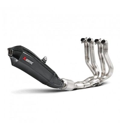 Questo scarico ha la marmitta realizzata in acciaio con fodera esterna in Carbonio e coperchio terminale in pura fibra di carbonio. Viene fornita di collettore in Titanio e tutto quanto quello che occorre per un corretto montaggio. Questo scarico gode di una altissima reputazione grazie alla cura estrema che la Akrapovic riserva nello sviluppo del prodotto. Infatti, come ogni prodotto Akrapovic, anche questo scarico garantisce un discreto aumento delle prestazioni agli alti regimi.