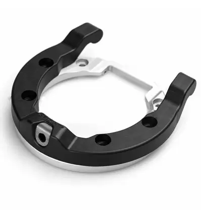 Tank Ring Quick Lock SW-Motech I generazione per collegamento borse serbatoio predisposte su varie moto Aprilia, Ducati, MV Agusta, Moto Guzzi, Moto Morini. Il sistema Quick Lock di SW-Motech prevede il montaggio di questa flangia sulla cornice del tappo serbatoio che permetterà poi il collegamento rapido e sicuro di una serie di borse serbatoio predisposte. La flangia non impedisce l'aperture del tappo del serbatoio e il sistema di ancoraggio con le borse è rapido da gestire e anche molto sicuro.