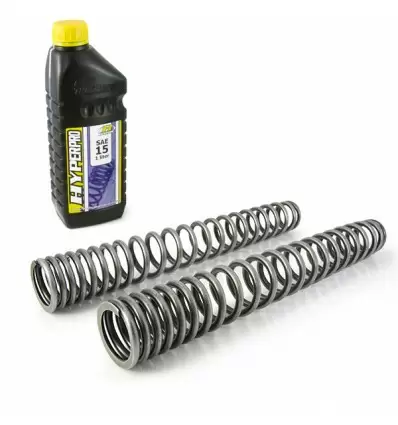 La Hyperpro è specializzata nella produzione di molle progressive e sospensioni per moto. Questo kit nasce per offrire una migliore sensibilità dello sterzo e migliori performance in ogni condizione. Ogni kit viene fornito di molle, un flacone di olio forcelle della gradazione necessaria e istruzioni di installazione.