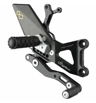 Il vantaggio di utilizzare una pedana regolabile è proprio quello di poter settare la posizione e gli angoli del poggiapiede, della leva del cambio e del freno al fine di raggiungere il fitting ideale con il proprio stile di guida. Ogni pedana Lightech è stata sviluppata in maniera specifica per i vari modelli di moto e testata in pista.