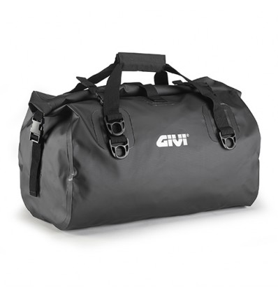 Borsone Givi impermeabile da sella o portapacchi serie Easy-T modello EA115BK, colore nero. Questa tipologia di borse si rende particolarmente adatta per fissaggio posteriore, sulla sella al posto del passeggero, sul portapacchi o addirittura sopra il baule se dotato di portapacchino. E' realizzata con cura in PVC elettrosaldato e quindi senza cuciture con un sistema di chiusura, denominato a rigiro, preso in prestito dal mondo outdoor. Questo particolare tipo di costruzione rende questa borsa completamente impermeabile all'acqua e non necessita quindi di essere protetta in caso di pioggia.