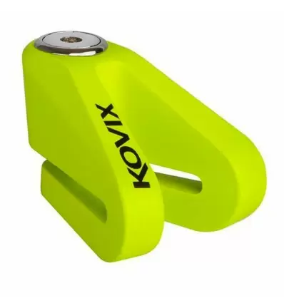Bloccadisco Kovix modello KV-1 versione con perno da 5mm, colore giallo fluo. Questo bloccadisco ha una struttura differente rispetto a quelli tradizionali grazie alla struttura sdoppiata che offre quindi due punti separati da dover forzare. I bloccadisco con perno piccolo e struttura tradizionale sono quindi molto più delicati di del Kovix KV1 che rappresenta quindi una buona scelta nell'ambito dei prodotti economici. Viene proposto anche in altre colorazioni.