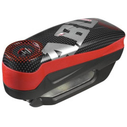 Bloccadisco Abus modello Detecto 7000 RS1 con allarme sonoro e led di funzionamento. Questo nuovo antifurto rappresenta la nuova evoluzione della sicurezza offerta da Abus nei bloccadisco. La parte interna del bloccadisco è realizzata con in speciale lega di acciaio indurita ed esternamente rivestito di materiale ergonomico. L'applicazione è semplice e si riesce a fare anche con una sola mano ed un led di funzionamento vi segnalerà che il bloccadisco è attivo. Oltre alla elevata sicurezza meccanica, questo bloccadisco è dotato di un sistema elettronico che, attivandosi automaticamente quando applicato sul disco, rilevata una qualsiasi vibrazione del mezzo parcheggiato, fa partire un allarme acustico. Ideale anche solo per scongiurare le famigerate partenze con il bloccadisco inserito.