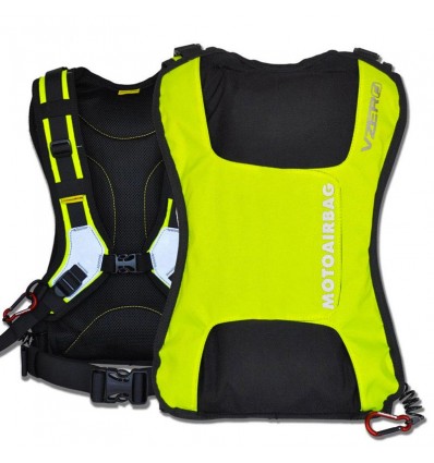 Airbag per moto e scooter Motoairbag modello VZERO, colore nero con inserti giallo fluo. Finalmente un vero Airbag è accessibile a tutti, che siate piloti o passeggeri, senza ulteriori vincoli a giacche dedicate, taglie o ulteriori accorgimenti tecnici. Il Motoairgag V-Zero si indossa come uno zaino sopra il vostro abbigliamento e grazie agli spallacci e alle fascette regolabili, potrete adattarlo con facilità alla vostra corporatura.