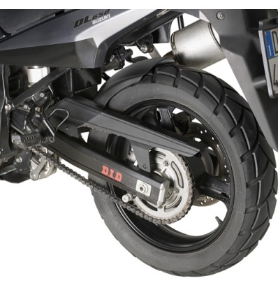 Parafango copricatena Givi specifico per Suzuki DL650 V-Strom 2004-2011 e 2017, colore nero. Questo accessorio è realizzato in ABS nero ed è stato sviluppato per proteggere la catena di trasmissione del vostro mezzo. E' tutto un unico blocco con un piccolo parafango per la ruota posteriore e viene fornito di viti e accessori necessari per il montaggio. Non è necessario apportare modifiche al mezzo.