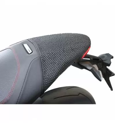 Retina antiscivolo Triboseat per passeggero da applicare sulla sella della moto. Questo speciale accessorio renderà più sicura la percorrenza in moto dei vostri passeggeri, soprattutto in situazioni dove la superficie di appoggio è particolarmente ridotta. La speciale rete 3D Triboseat è fatta in uno speciale materiale gommoso dalla massima aderenza. Ogni modello Triboseat è realizzato su misura di ogni moto per garantire un fissaggio perfetto senza sbavature. Si applica con facilità, ed in maniera non permanente, sopra al tessuto della vostra sella sfruttando fissaggi pre esistenti e senza dover utilizzare adesivi.