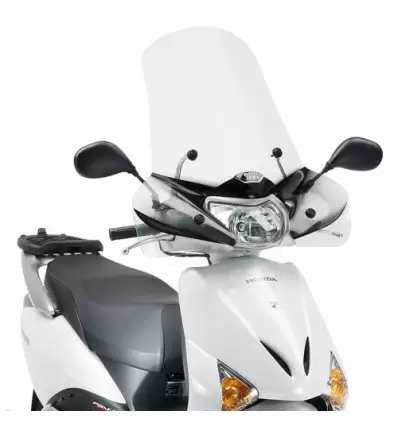 Parabrezza Givi trasparente specifico per Honda Lead 110 versioni 2008-2014. Questo parabrezza, ideale per ripararsi dal vento e dal freddo, è fornito di ogni vite o attacco necessario per il suo montaggio e non sono necessarie modifiche allo scooter.