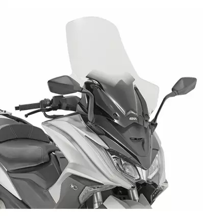 Parabrezza alto Givi per Kymco AK 550 dal 2017 al 2022. Questo parabrezza trasparente, ideale per ripararsi dal vento e dal freddo, è fornito di ogni vite o attacco necessario per il suo montaggio e non sono necessarie modifiche allo scooter.