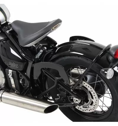Coppia di telai laterali Hepco & Becker neri per borse semirigide C-Bow specifici per Triumph Bonneville Bobber dal 2017. Grazie a questi telaietti potrete applicare velocemente le borse laterali Hepco & Becker dotate dello stesso sistema di aggancio rapido C-Bow, anche una alla volta. Questi telai si applicano sui punti di ancoraggio pre esistenti sulla moto alla quale non andranno apportate modifiche. Sono dotati di istruzioni di montaggio ed ogni altro accessorio necessario per il montaggio.