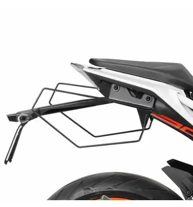 Telaietti laterali Shad per sostegno borse morbide specifico per KTM Duke 125 e Duke 390 dal 2017 al 2023. Questa coppia di tealietti sono stati sviluppati in maniera specifica per la vostra moto e vi permetteranno di sostenere qualsiasi coppia di borse laterali soffici senza che le stesse vadano a toccare le carene o la marmitta. Sono realizzato in tubolari metallici verniciati di colore nero e vengono forniti di istruzioni di montaggio.