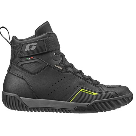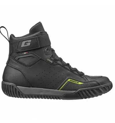 Scarpe da moto Gaerne modello G.Rocket Gore-Tex, colore nero con dettaglio in rosso. Le scarpe Gaerne G.Rocket Gore-Texsi adattano alle ultime tendenze e potrebbero diventare con facilità le vostre scarpe da moto preferite. Dichiaratamente ispirate al mondo outdoor, sono state costruite per risultare leggere e comode ma anche precise nella guida sportiva. Sono realizzate in pelle con zone microforate e dotate della speciale membrana Gore-Tex che garantisce i migliori livelli di impermeabilità all'acqua e traspirazione. La suola in gomma garantisce un ottimo grip sulla moto e i rinforzi sui malleoli vi proteggeranno in caso di scivolata.