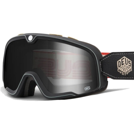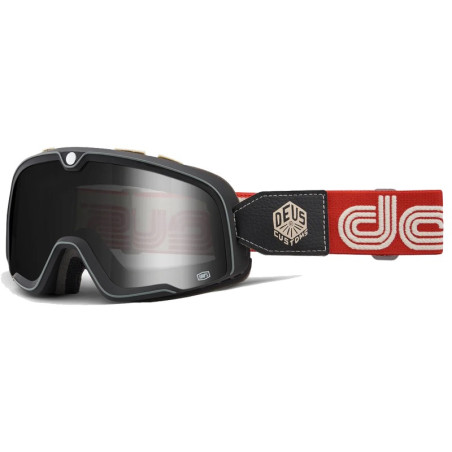 Mascherina da moto Barstow 100% modello Deus, colore nero e rosso con lente fumè. Questi occhiali da moto fascia elastica della Barstow hanno uno stile molto particolare, a metà strada tra il moderno ed il classico. Sono infatti adatti per molteplici abbinamenti su moto e caschi di ispirazione vintage, classico, cafè racer ma anche custom.