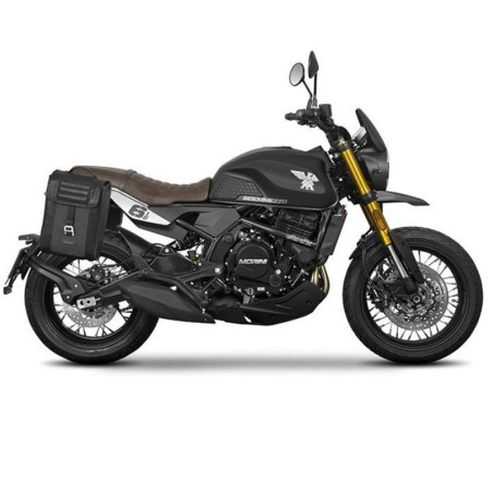 Telai laterali Shad per borse serie SR su Moto Morini Seiemmezzo SCR e STR. Shad ha sviluppato questo sistema specifico per moto retrò e cafè racer in modo da non modificare in alcun modo il carattere iconico di questi mezzi. Infatti anche le borse SR38 previste per questo sistema hanno un look puramente vintage e non vanno a cambiare l'estetica della moto.