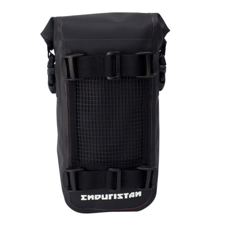 Borsa per parafango Enduristan modello Fender Bag Small. Quando si affrontano grandi viaggi, la capacità di carico è importantissima e ottimizzarla vi garantirà maggiore comfort e sicurezza. Questa borsa è stata progettata per essere applicata saldamente sul parafango della moto e permettervi di trasportare oggetti leggeri, come ad esempio camere d'aria di ricambio, antipioggia compatti o anche delle barrette energetiche. Questa mini borsa è dotata di cinghie con speciali ganci per un collegamento stabile proprio sul parafango.
