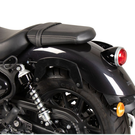 Coppia di telai laterali Hepco & Becker neri per borse semirigide C-Bow specifici per Royal Enfield Super Meteor 650. Grazie a questi telaietti potrete applicare velocemente le borse laterali Hepco & Becker dotate dello stesso sistema di aggancio rapido C-Bow, anche una alla volta. Questi telai si applicano sui punti di ancoraggio pre esistenti sulla moto alla quale non andranno apportate modifiche. Sono dotati di istruzioni di montaggio ed ogni altro accessorio necessario per il montaggio.