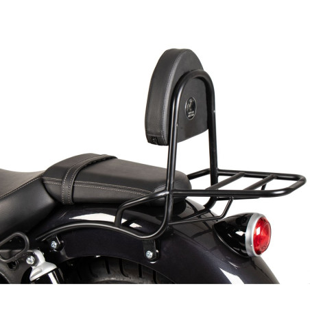 Schienalino con portapacchi nero Hepco & Becker specifico per Royal Enfield Super Meteor 650, colore nero. Il Sissybar ovvero lo schienalino per passeggero è considerato un accessorio indispensabile per un vero look custom della vostra moto. Sostiene il passeggero durante i viaggi ed è dotato di un cuscinetto imbottito. Questa versione è dotata di una base portapacchi posteriore per aumentare la capacità di carico della vostra moto.