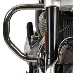 Coppia di telai paramotore Hepco & Becker cromati per Royal Enfield Super Meteor 650. Questi telai sono realizzati in acciaio tubolare e sono stati sviluppati su misura per la vostra moto. Questo paramotore proteggerà i preziosi cilindri da cadute o urti accidentali. Vengono forniti di tutte le viti necessarie per il montaggio e non occorrerà effettuare modifiche alla moto.