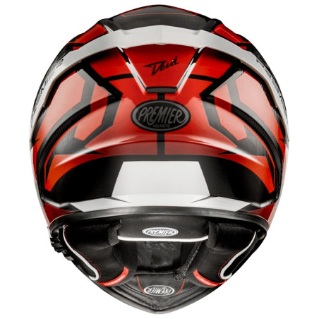 Casco Premier modello Devil in versione JC92 colori nero, rosso e bianco lucidi. Questo casco integrale è realizzato con una nuova tecnica di stratificazione in fibra tricomposita (Dyneema-Carbon-Aramidic e resina epossidica). Viene proposto in due dimensioni di calotta esterna per offrire le migliori proporzioni in ogni gruppo di taglie. Si tratta di un casco dalla linea sportiva, enfatizzata dallo spoiler posteriore, ma con connotati turistici e quindi adatto a molti tipi di utenze. Troverete infatti la visiera interna parasole a scomparsa azionabile sul lato sinistro della calotta, molto utile in viaggio. La visiera principale è dotata della lente pinlock antiappannante (inclusa nella confezione) mentre gli interni sono completamente amovibili per il lavaggio.