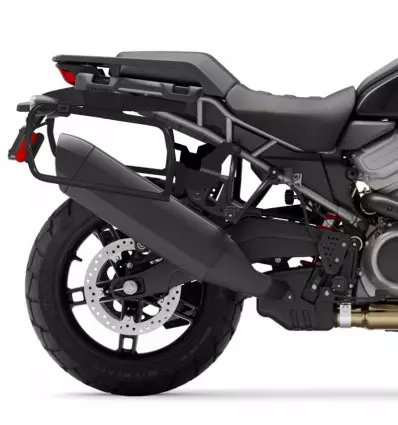 Portavaligie laterale Shad 4P per valigie compatibili specifico su Harley Davidson Pan America. Shad evolve il suo sistema di trasporto dei carichi sulla moto grazie al sistema di attacco denominato 4P che prevede dei telai estremamente rigidi e leggeri. I telai 4P sono infatti spessi 20 mm ma allo stesso tempo risultano molto snelli alla vista e passano quasi inosservati. Inoltre sono rinforzati con una traversa per conferire maggiore rigidità alla struttura e supportare le sollecitazioni più estreme
