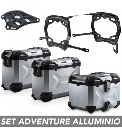 Il set Trax Adventure, preparato dalla SW-Motech per la vostra moto è completo di tutto. Non dovrete pensare ad allestire un set con il rischio di sbagliare o di dimenticare qualcosa. La linea di valigie Trax Adv, pluripremiata in Germania, è completamente realizzata in spesso alluminio con inserti in plastica nei punti critici e di contatto. E' particolarmente adatto a chi pratica fuoristrada e che quindi sollecita molto il sistema di trasporto. Ideale anche per viaggiare perché la sua forma ne massimizza la capacità di carico. Viene fornito di istruzioni di montaggio e non sarà necessario apportare modifiche alla moto.