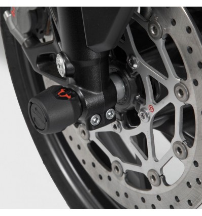 I tamponi Sw-Motech sono infatti progettati per assorbire parte degli urti e, soprattutto, proteggere dallo sfregamento salvaguardando le preziose forcelle che in caso di incidente sono una delle parti maggiormente esposte a danneggiamento.