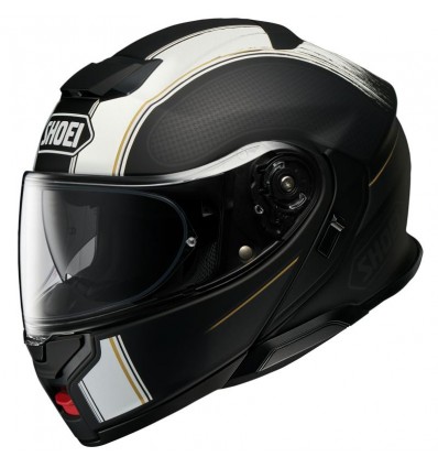 Casco Shoei Neotec III apribile grafica versione Satori colore TC5 nero e bianco opachi con dettagli oro. Il casco Neotec 3 sostituisce il suo predecessore integrando numerose migliorie ed ottimizzazioni. Come ogni casco Shoei è realizzato nella speciale fibra composita AIM - Advanced Integrated Matrix - esclusiva Shoei. Migliorare un casco già acclamato come uno dei migliori apribili sul mercato non è stato facile. Oltre all'adeguamento alla nuova omologazione 22-06, sono state migliorate le prestazioni di isolamento acustico, ventilazione e visibilità.