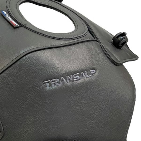 Copriserbatoio Bagster in similpelle grigio scuro realizzato su misura per Honda Transalp 750.