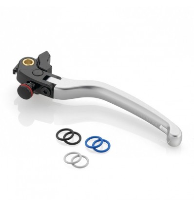 Le leve freno e frizione Rizoma sono un esempio di stile e funzionalità. Sono ricavate dal pieno in lega di alluminio e lavorate con macchine a controllo numerico ad alta precisione per offrire livelli di finitura invidiabili. Le leve Rizoma 3D sono di tipo pieghevole; la leva è quindi snodata all'altezza del supporto sulla moto in modo da evitare danneggiamenti più seri in caso di caduta. Sempre sul suo supporto è stato inserito un pomellino girevole per regolare la distanza dalla manopola e migliorare il feeling con la moto. Il pomellino girevole è dotato di ring in gomma, per il quale potrete scegliere il colore grazie al kit incluso nella confezione, per un ulteriore livello di personalizzazione.
