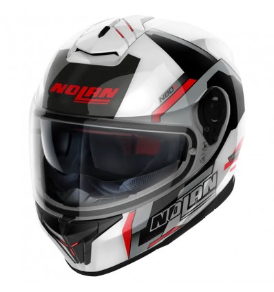 Casco Nolan modello N80.8 grafica Wanted N-COM, colore bianco metallizzato, argento e rosso. Il casco N80.8 rappresenta l'evoluzione del suo predecessore ed è stato pensato... Leggi di più