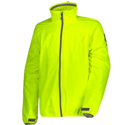 Giacca antipioggia Scott modello Ergonomic Pro DP, colore giallo fluo. Questa protezione per la pioggia di Scott è destinata ad un pubblico esigente in quanto offre eccellenti prestazioni di comodità, grazie al tessuto in poliuretano e poliestere elasticizzato, di asciugatura rapida e ovviamente di protezione dalla pioggia. La membrana impermeabile DRYOsphere è laminata con il tessuto e questo non permetterà all'acqua di filtrare a cominciare dalla parte più esterna. Le zip sono ti tipo a tenuta stagna e una volta compattato, anche bagnato, potrà essere contenuto nella sacchetta in dotazione.
