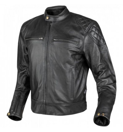 Giacca da moto in pelle Moore Wear modello Race 2, colore nero. Questo giubbotto da moto nasce per le utenze di moto classiche e cafè racer e rappresenta una delle migliori scelte con rapporto qualità-prezzo che siamo riusciti a trovare. La pelle bovina utilizzata è di tipo pieno fiore: rimane molto morbida e "grassa" al punto giusto. Lo stile semplice e sobrio vi permetterà di utilizzarlo anche nella vita di tutti i giorni in quanto non troverete particolari connotati motociclistici tecnici applicati esternamente se non un logo stampato appena visibile sulla manica. Le spalle presentano il classico motivo trapuntato delle giacche vintage che fornirà anche ulteriore protezione. La giacca è dotata di imbottitura termica staccabile e protezioni omologate CE per spalle e gomiti.