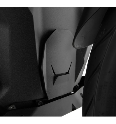 Questa protezione si applica nella parte centrale inferiore del blocco motore che è la più esposta a urti e pietrisco, specie se fate attività fuoristrada. E' interamente realizzata in robusto alluminio anodizzato nero e si fissa su punti di ancoraggio già esistenti sulla moto.