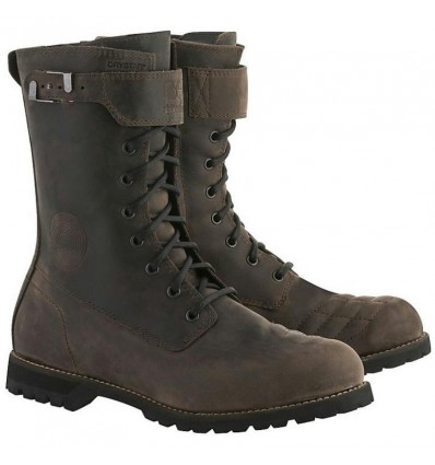 Stivali da moto Alpinestars modello Firm Drystar, colore marrone. Questi stivali fanno parte della collezione Orcar di Alpinestars che riprende lo stile delle decadi anni 60/70. Chiaramente i contenuti tecnici sono moderni e potrete quindi godere di un prodotto perfetto per una moto classica o cafè racer. La tomaia è realizzata in pelle trattata con effetto scamosciato con una suola vulcanizzata che offre un ottimo grip. All'interno è stata inserita la speciale membrana Drystar per la totale impermeabilità all'acqua ed un ottimo valore di traspirazione. Avrete inoltre, oltre ai lacci frontali, anche una zip laterale per facilitare l'indosso. Le zone più soggette a sfregamento sono state rinforzate.