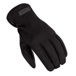Guanti da moto Moore modello City, colore nero. Questi guanti sono perfetti per un utilizzo cittadino e grazie al suo prezzo, anche molto convenienti. L'aspetto è sobrio; il design semplice li rende adatti all'uso quotidiano. Il tessuto esterno in softshell è molto morbido ed elastico mentre il palmo in pelle garantisce grip sulla manopola. Internamente è presente una imbottitura termica oltre alla speciale membrana che li rende completamente impermeabili all'acqua.