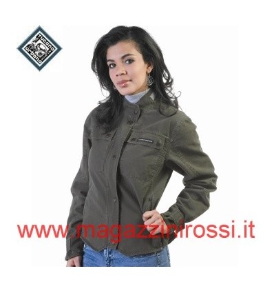 Giacca Tucano Urbano da donna modello Shorty Cotton Lady (art. 8553MA), colore marrone. Questo giubbino corto, espressamente disegnato per il pubblico femminile, è interamente realizzato in cotone Canvas leggero ed è totalmente traspirante. Ideale per un utilizzo nelle stagioni miti da un pubblico che cerca capi sobri ma tecnici. Sono presenti delle protezioni omologate amovibili sui gomiti, tasche portadocumenti interne, regolazioni sui fianche ed un inserto rifrangente sul collo per la sicurezza passiva.